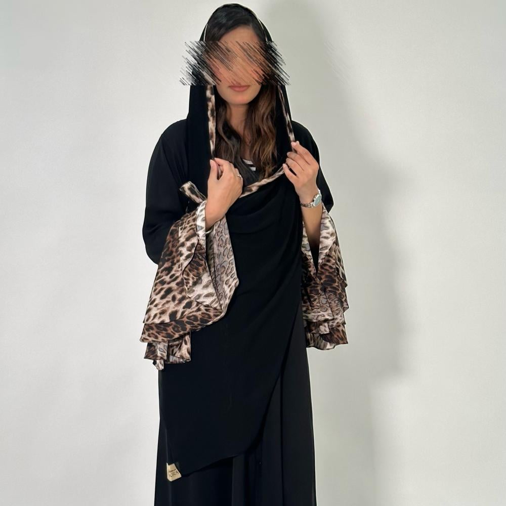 - تتميز العباية بتصميم طويل، بأكمام واسعة ملونة.
